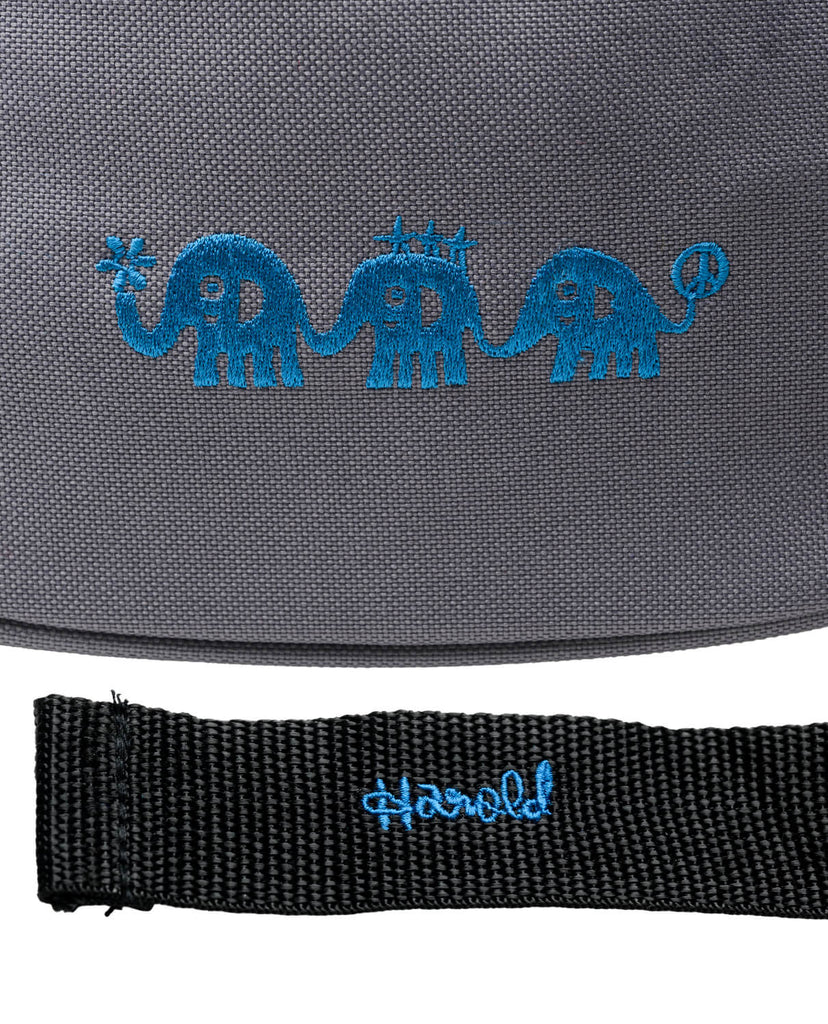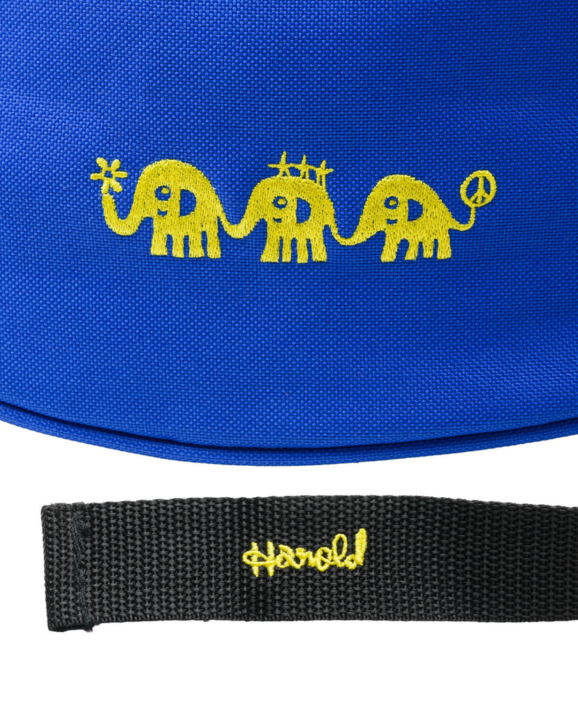 そのマークを正面に大きく刺繍。ベルト端には安齋氏のハロルドサイン刺繍。