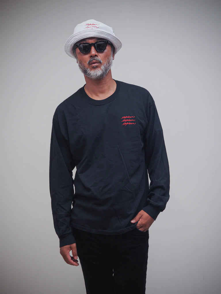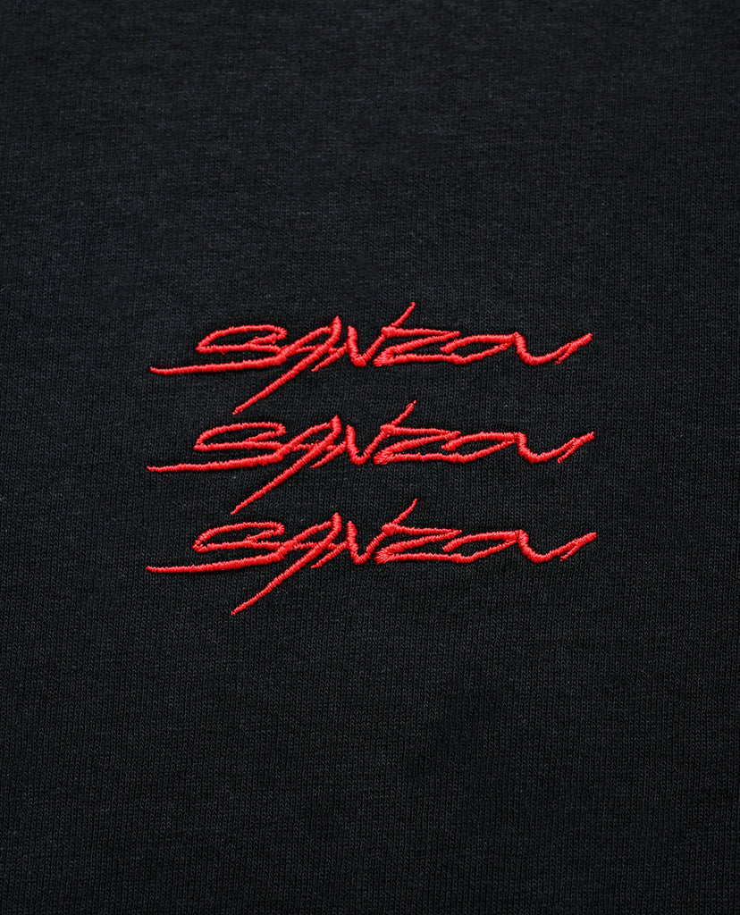 LAを拠点にヴァージル・アブロー Virgil Ablohやエイサップ・ロッキー A$AP Rocky、ニッキー・ミナージュ Nicki Minajなどセレブリティらのカバーロゴをハンドレタリング&カリグラフィーで表現する人気アーティスト、デュウォン Duong Nguyen氏によるSANZOUスペシャルロゴをフロント胸元に刺繍デザインした長袖Tシャツ。バックの3匹のゾウが刺繍になって、より愛らしいアクセントに。