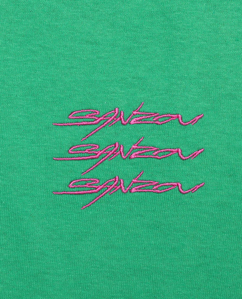 LAを拠点にヴァージル・アブロー Virgil Ablohやエイサップ・ロッキー A$AP Rocky、ニッキー・ミナージュ Nicki Minajなどセレブリティらのカバーロゴをハンドレタリング&カリグラフィーで表現する人気アーティスト、デュウォン Duong Nguyen氏によるSANZOUスペシャルロゴをフロント胸元に刺繍デザインした長袖Tシャツ。バックには3匹のゾウが愛らしいアクセント。