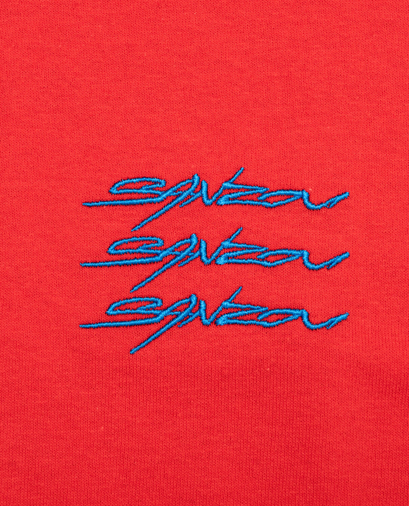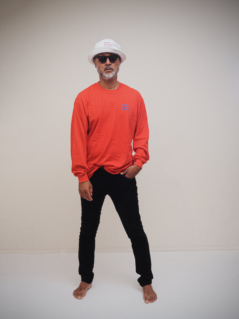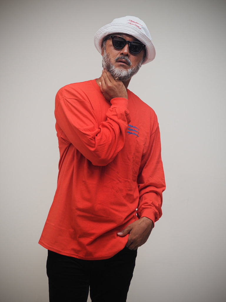 LAを拠点にヴァージル・アブロー Virgil Ablohやエイサップ・ロッキー A$AP Rocky、ニッキー・ミナージュ Nicki Minajなどセレブリティらのカバーロゴをハンドレタリング&カリグラフィーで表現する人気アーティスト、デュウォン Duong Nguyen氏によるSANZOUスペシャルロゴをフロント胸元に刺繍デザインした長袖Tシャツ。バックには3匹のゾウが愛らしいアクセント。