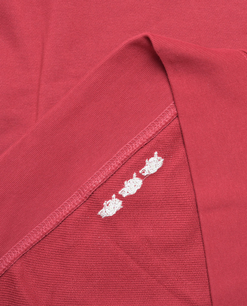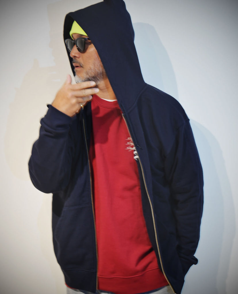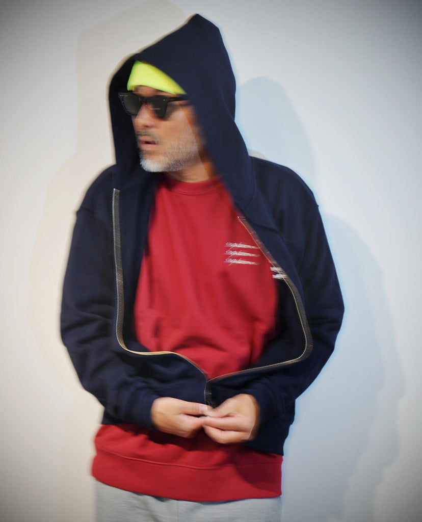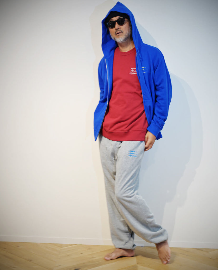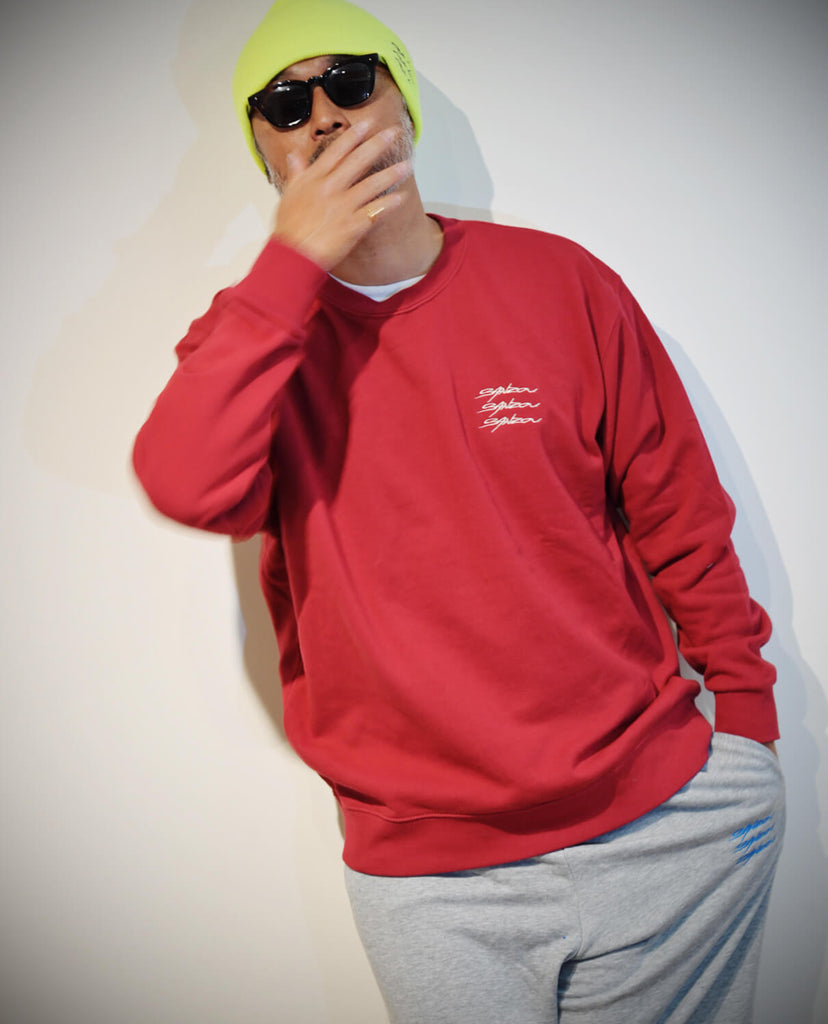 LAを拠点にヴァージル・アブロー Virgil Ablohやエイサップ・ロッキー A$AP Rocky、ニッキー・ミナージュ Nicki Minajなどセレブリティらのカバーロゴをハンドレタリング&カリグラフィーで表現する人気アーティスト、デュウォン Duong Nguyen氏によるSANZOUスペシャルロゴをフロント胸元に刺繍デザインしたクルーネックスウェットトップ。バックには3匹のゾウ刺繍が愛らしいアクセント。