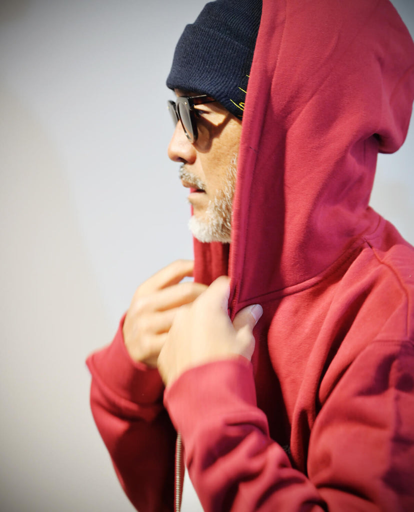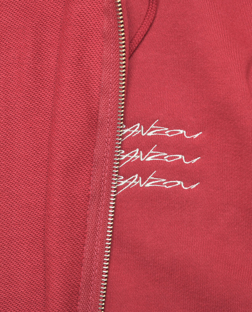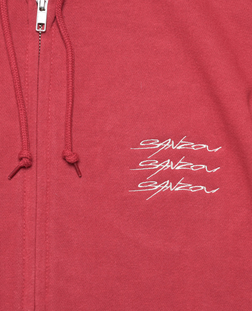 【SALE 30%】SANZOU 3Lines Zip Up Hoodie -BURGUNDY×Gray Logo-