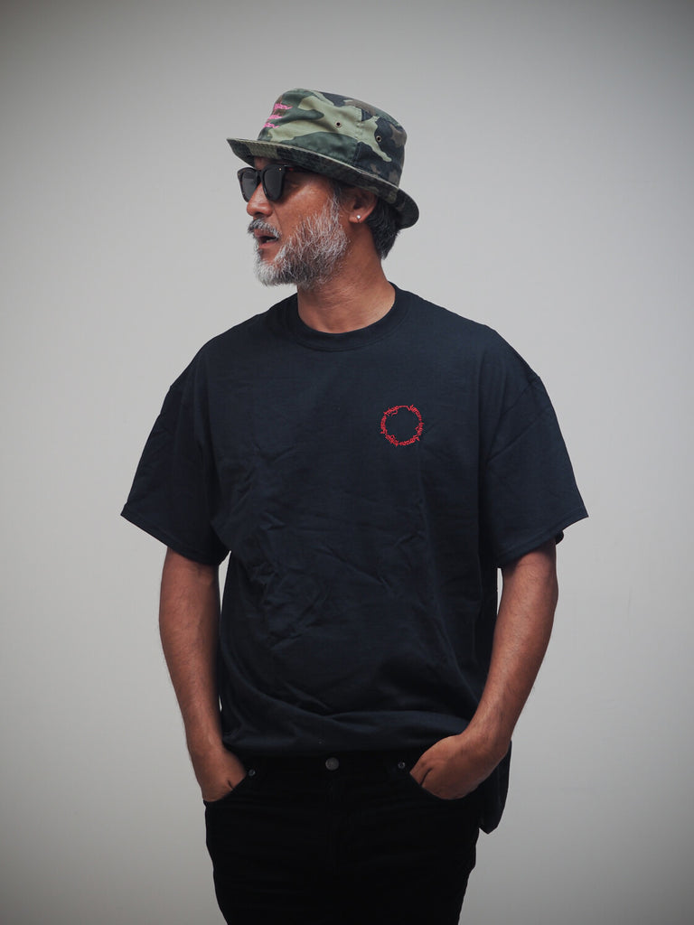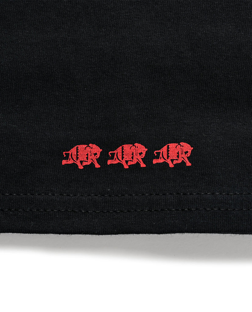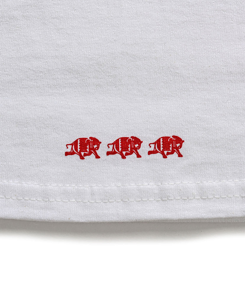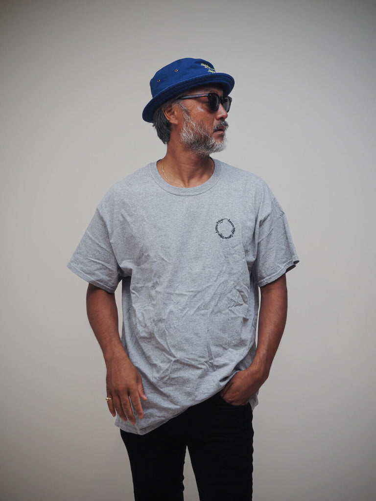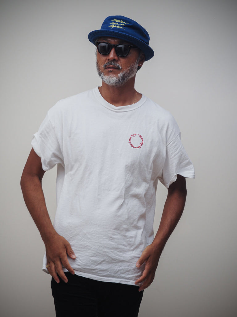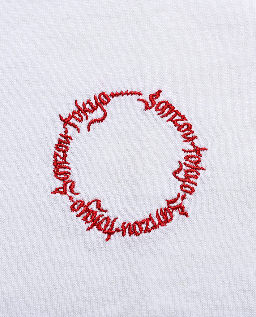 LAを拠点にヴァージル・アブロー Virgil Ablohやエイサップ・ロッキー A$AP Rocky、ニッキー・ミナージュ Nicki Minajなどセレブリティらのカバーロゴをハンドレタリング&カリグラフィーで表現する人気アーティスト、デュウォン Duong Nguyen氏によるSANZOUサークルロゴをフロント胸元に刺繍デザインしたオープン記念限定、Tシャツ。バックには3匹のゾウが愛らしいアクセント。